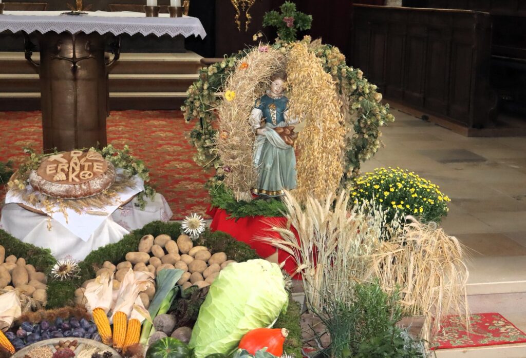 Mit dem Leitgedanken „Dankbarkeit und Dankeschön bringen Licht in die Herzen, bei mir und beim Gegenüber“ feierten die Pfarreien Herz Jesu Bad Feilnbach und St. Michael Litzldorf das diesjährige Erntedankfest. In Bad Feilnbachs Pfarrkirche hatte der Gemeinschaftschor, geleitet von Sebastian Schlierf, stellvertretend für Anderl Henfling, dazu die „Vater Unser Messe“ von Lorenz Maierhofer vorgetragen.