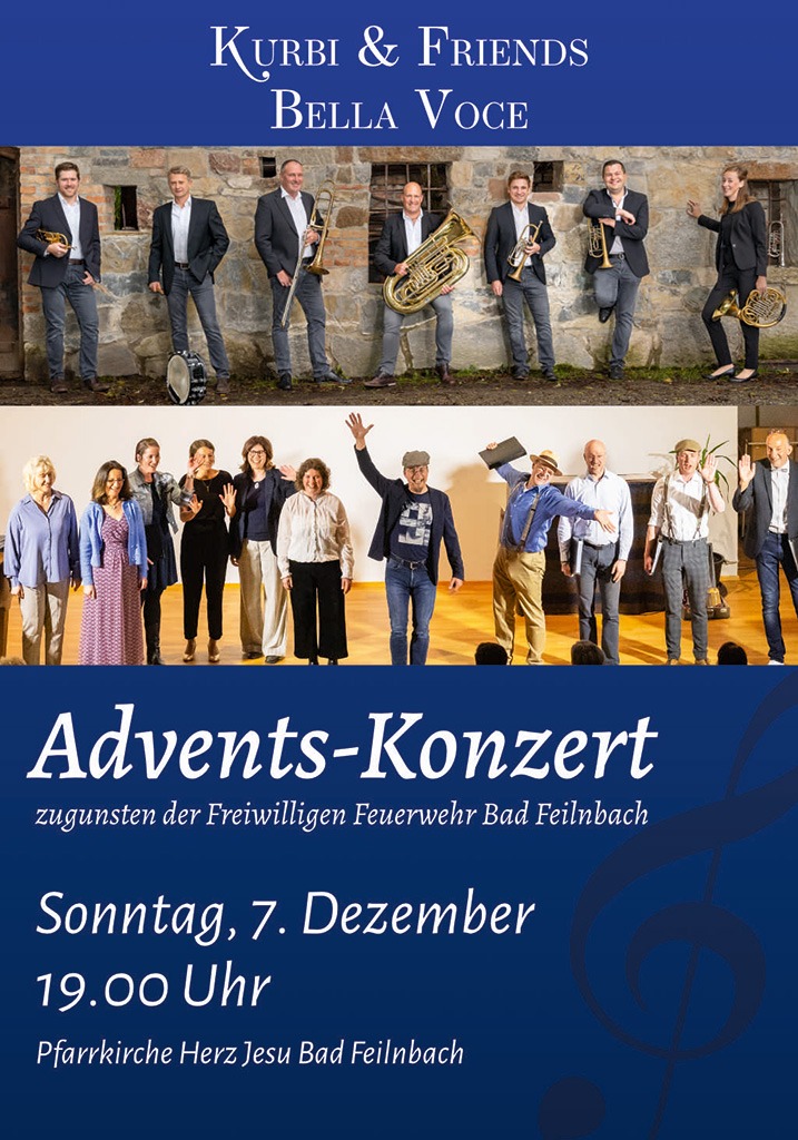Am Sonntag, 7. Dezember, findet um 19 Uhr in der Pfarrkirche „Herz Jesu“ in Bad Feilnbach ein adventliches Konzert statt. Die Blechbläser „Kurbi & Friends“ musizieren gemeinsam mit dem Gesangsensemble „Bella Voce“ und gestalten ein abwechslungsreiches Programm zur Einstimmung auf die Adventszeit.