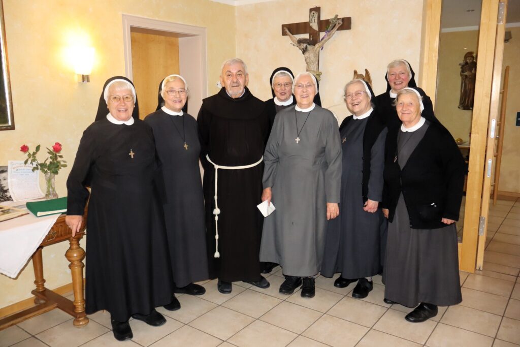 Sieben Franziskusschwestern, geleitet von Oberin Sr. Elisabeth (2.v.r) sowie Hausgeistlicher Pater Franz (3.v.l.) leben heute im Haus St. Josef