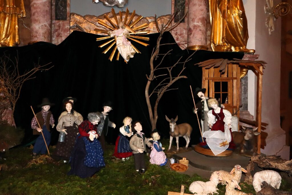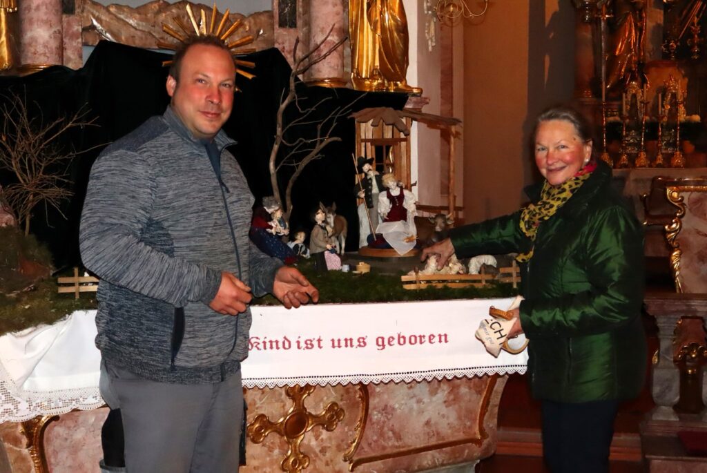Veronika Kirner widmete sich mit Leidenschaft und Hingabe den Aufbauten und vor allem der Schaffung der liebevollen und Ausdruck widerspiegelnden kleinen bescheidenen Darstellern. Eine Krippe aus der Hand der in Bad Feilnbach bekannten „Liasn Vroni“ erzählt auch in der Pfarrkirche St. Michael in Litzldorf die herzerwärmende Weihnachtsgeschichte.
