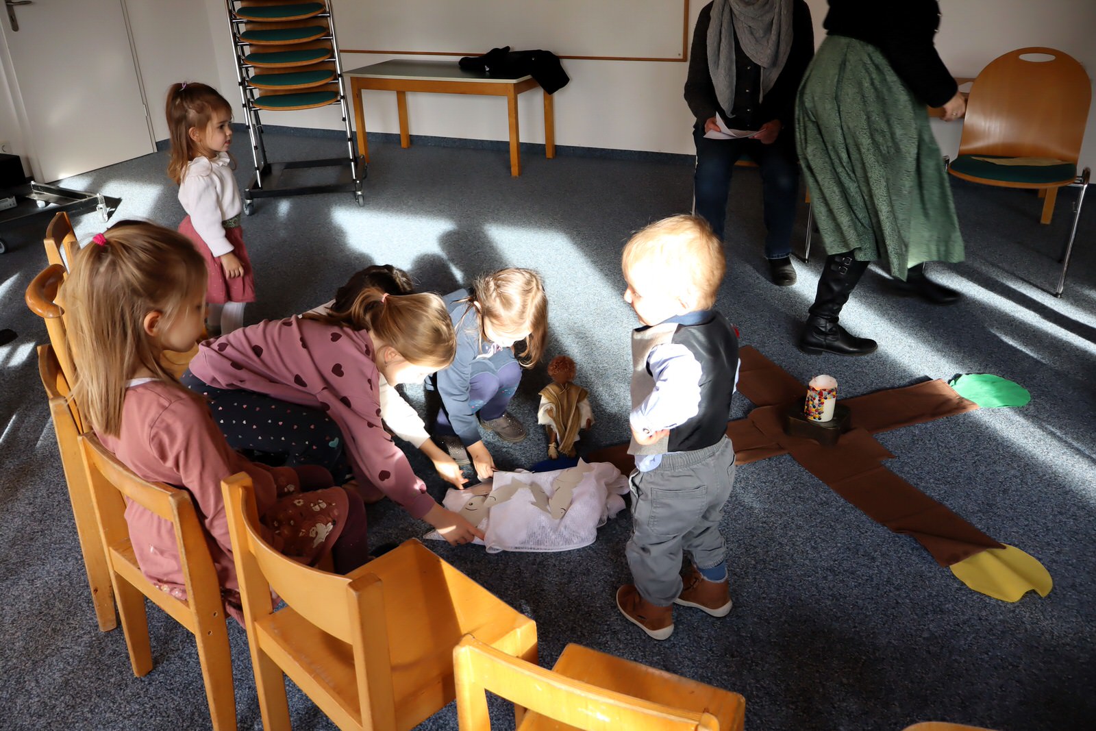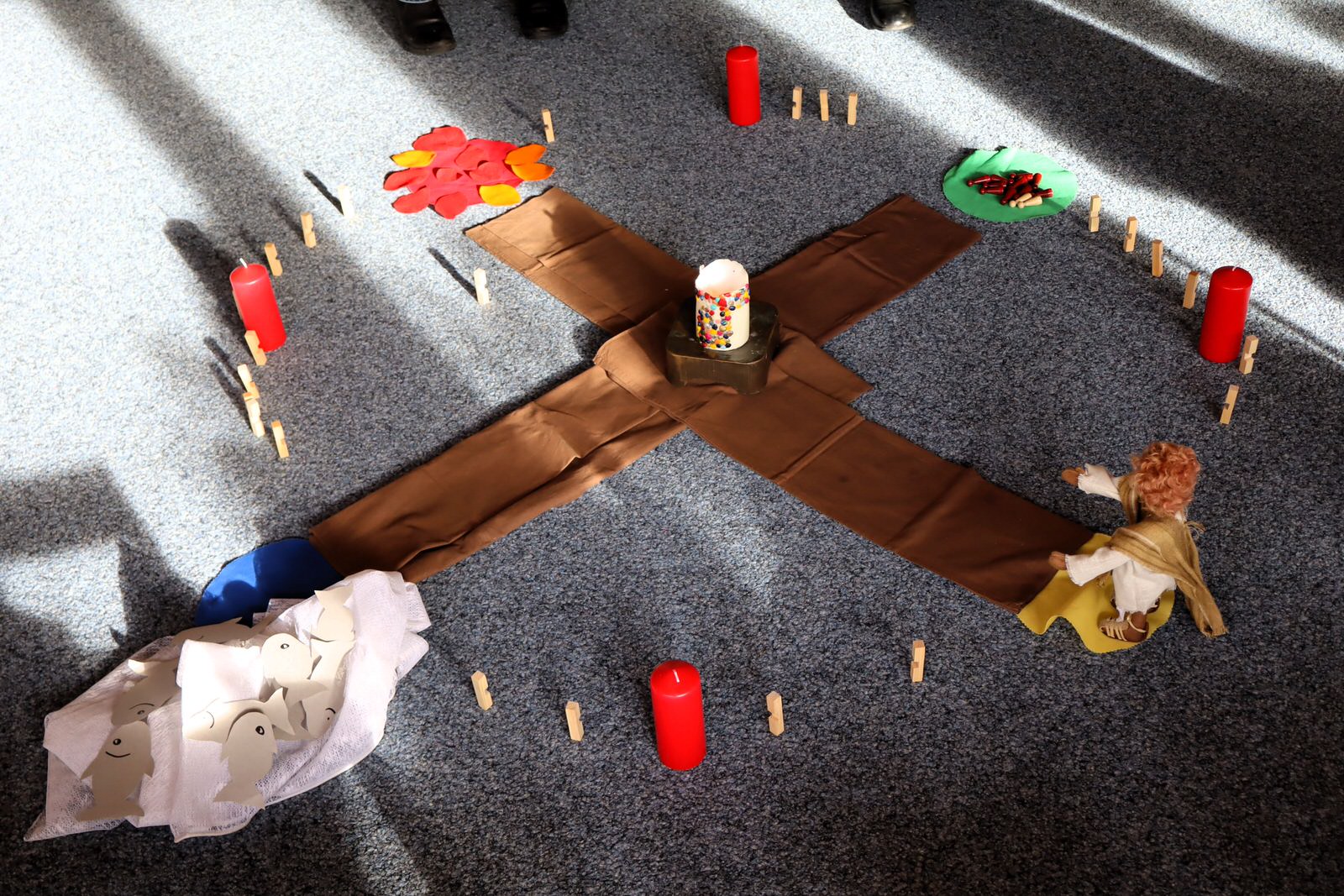 Auf seinem Weg begleiteten die jüngsten Christen der Pfarrei Herz Jesu im Rahmen eines Kindergottesdienstes den Heiligen „Andreas“. Der Sohn eines Fischers aus Kafarnaum zählt zu den ersten Jüngern, den Jesus als Menschenfischer in die Gemeinschaft der zwölf Apostel rief. Der biblischen Überlieferung wurde Andreas, anders als Jesu, den er bis zum Tod am Kreuz begleitete, den Märtyrertod am „Schrägen Kreuzbalken“, hinlänglich als auch „Andreaskreuz“ bekannt.